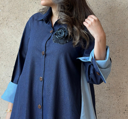 Two-Toned Denim فستان دراعه دينم لونين
