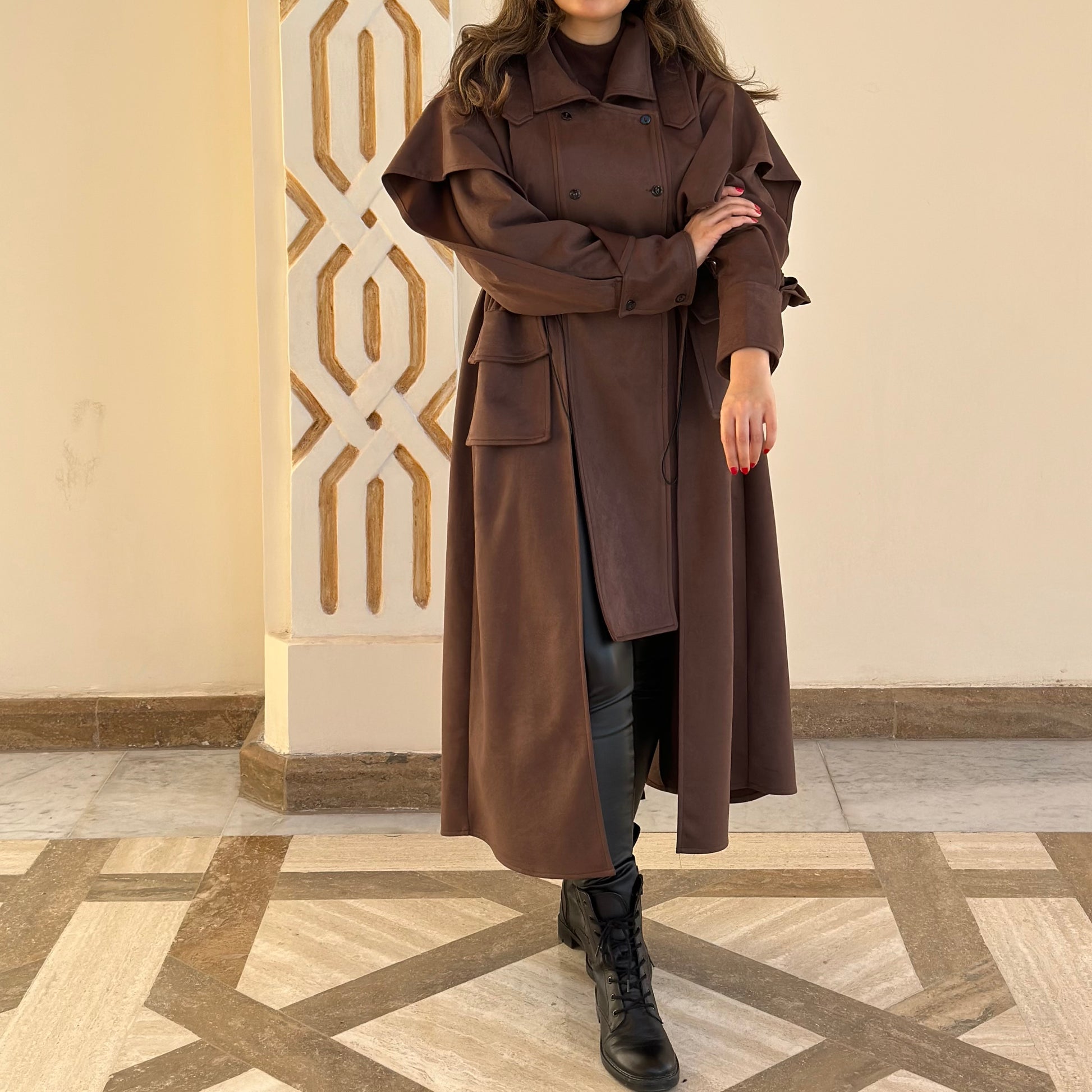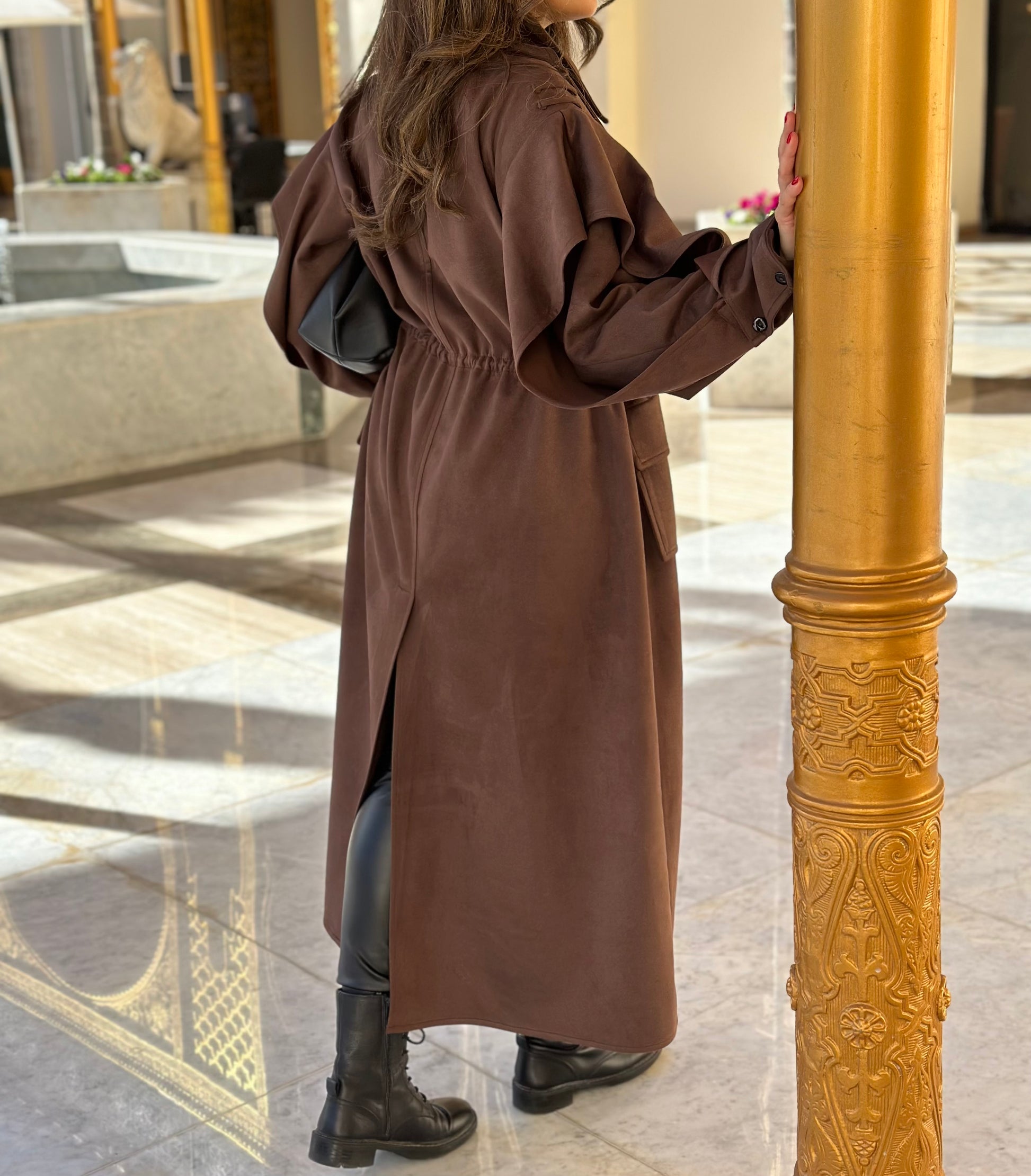Brown suede elevated design trench