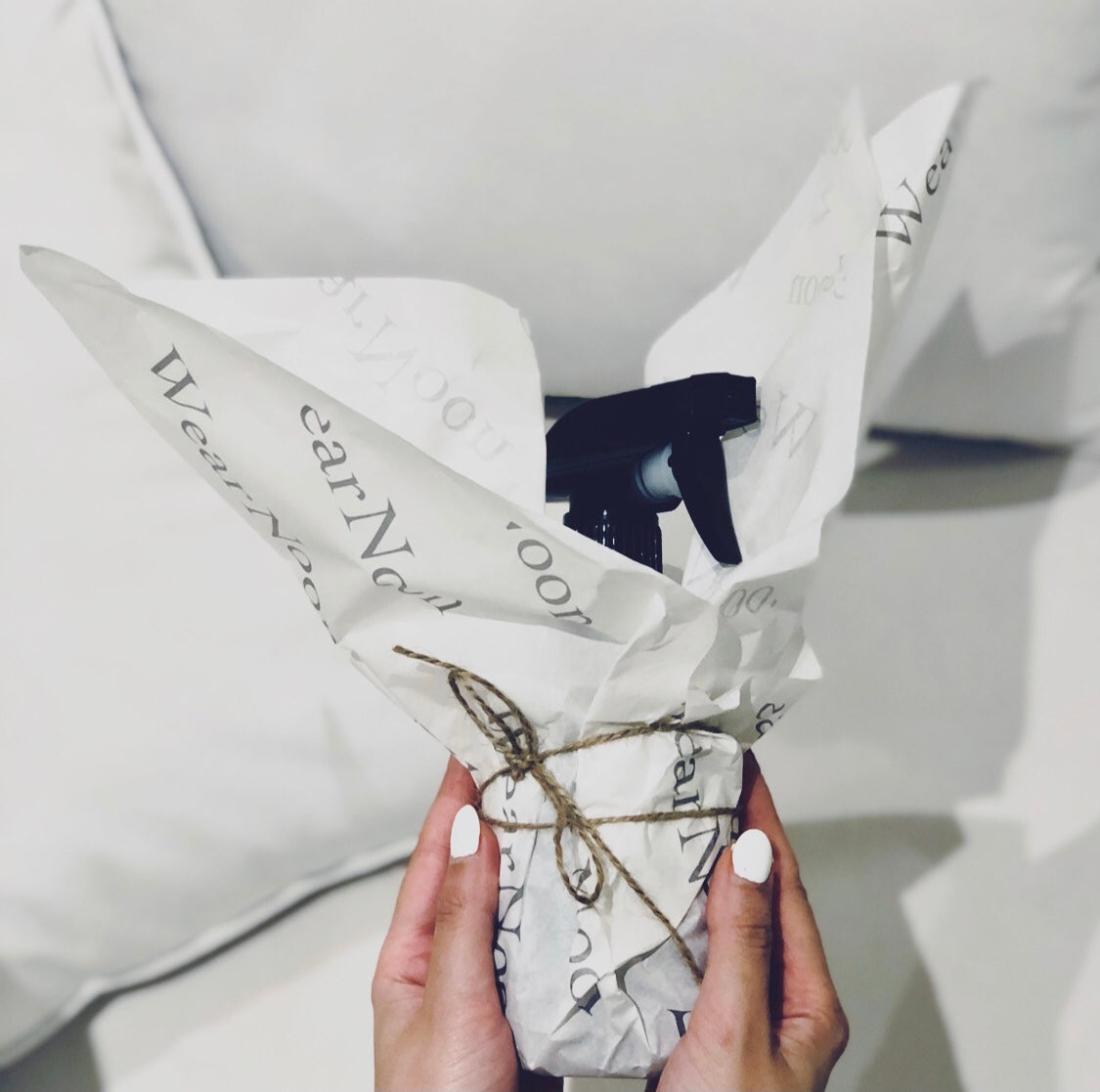 WearNoon signature perfume spray in a fresh, clean cotton scent that evokes freshly washed laundry and crisp spring air for home, linen, and personal use.